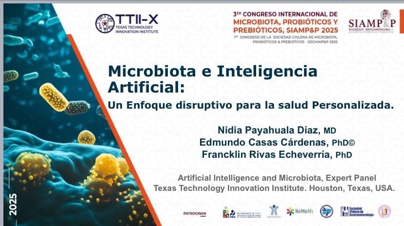 Dra. Nidia Payahuala, expone el 26/4/2025, con el apoyo del equipo de Texas, USA, de Kauel inc, en el Tercer Congreso Internacional de Microbiota, Hotel W, en Santiago de Chile sobre: Microbiota e Inteligencia...